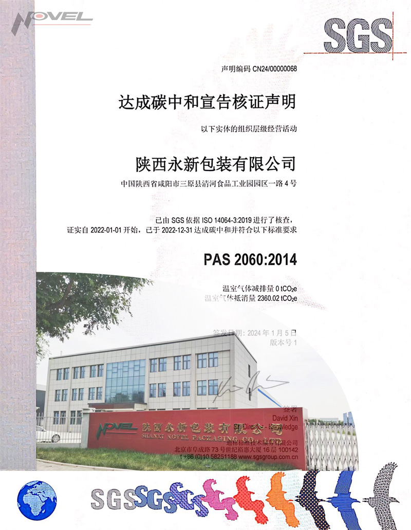 作為國家級創新型企業,近年來,永新股份積極響應綠色包裝2025計劃,依托國家認定企業技術中心、綠色包裝材料國家地方聯合工程實驗室,研發推廣單一材質可回收包裝、低克重高強度綠色包裝等環境友好型材料,推廣減塑應用場景,從源頭上實現包裝減量、節材降耗和綠色引領。2024年1月,永新股份全資下屬企業陜西永新包裝有限公司獲得通標SGS頒發的碳中和宣告核證聲明(PAS2060:2014),成為永新股份首家“零碳工廠”,讓生態設計理念由藍圖變成了現實。
